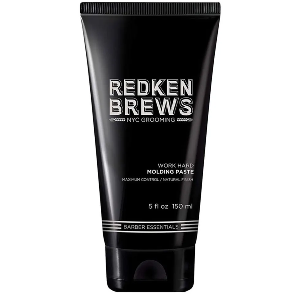 Die Formel der Work Hard Molding Paste von Redken Brews enthält zusätzliche Polystretch-Fasern, um die Flexibilität des Haares zu fördern.