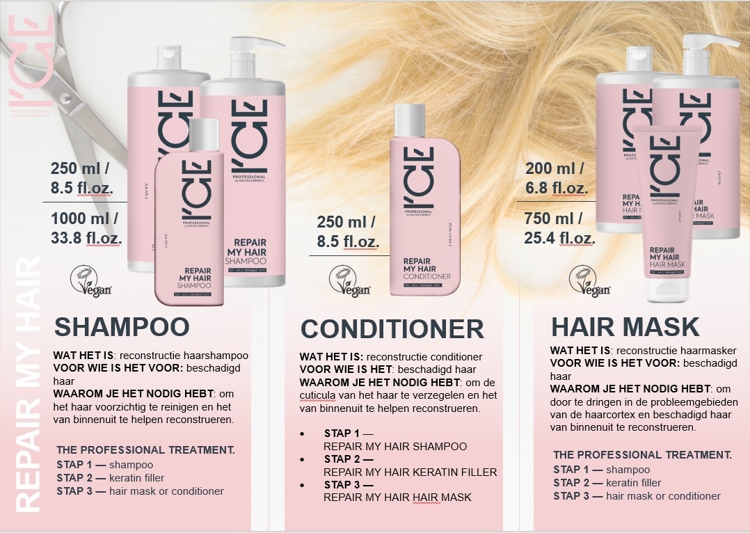 Die Formel des Shampoos basiert auf einem Proteinkomplex, der die für den Wiederaufbau der Haarstruktur notwendigen Nährstoffe liefert. Die Zusammensetzung enthält außerdem natürliche Pflanzenöle wie Jojoba-, Argan- oder Traubenkernöl, die das Haar mit Feuchtigkeit versorgen und es vor schädlichen äußeren Einflüssen schützen.