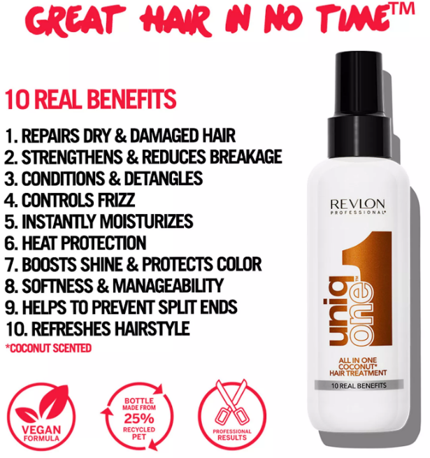 Uniq One All In One Hair Treatment Coconut ist eine Behandlung mit einem köstlichen Kokosnussduft. Diese Behandlung verfügt über 10 einzigartige Vorteile, die dem Haar die optimale Pflege bieten, die es benötigt. Uniq One All In One Hair Treatment Coconut lässt das Haar schön und gesund aussehen.
