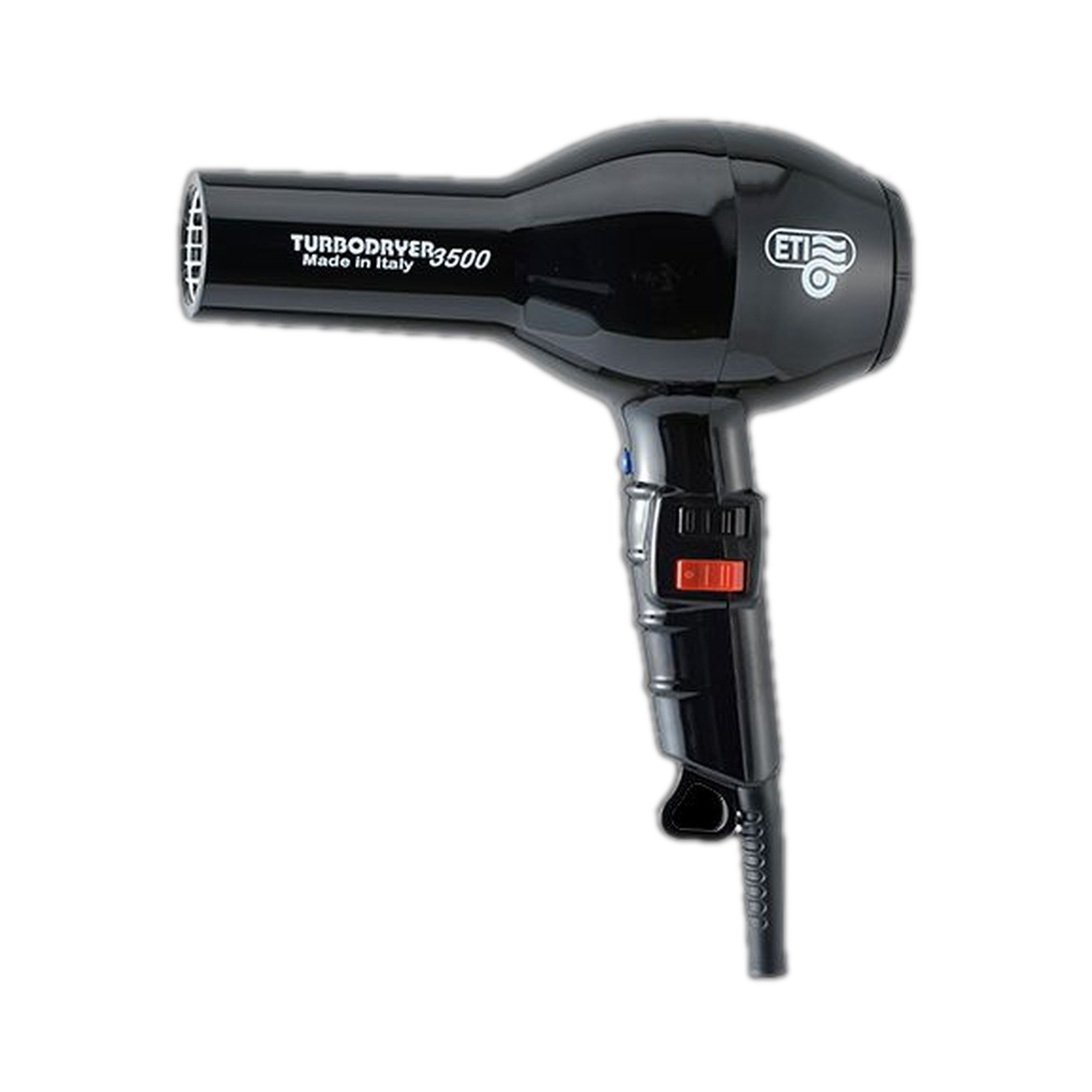 Mega power with the ETI Turbodryer 3500. Dry your hair quickly with this hairdryer. This heat-resistant blow dryer has two speeds that you can control yourself on the side of the handle. Three temperature settings, which you can also manually adjust, let you control the hairdryer's power.