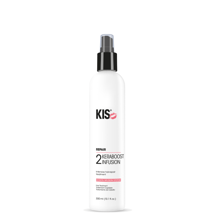 KIS Kera Boost Infusion es un producto extremadamente bueno para devolverle a tu cabello su fuerza original y reconstruirlo desde adentro. Todo el mundo sabe que todos los tratamientos que nos hacemos en el cabello no son buenos para el cabello. Calor, química del teñido del cabello y permanentes, pero no olvidemos la influencia de la contaminación ambiental. Por eso es importante mantener y reconstruir el cabello. ¡Kis Kera Boost Infusion le da a tu cabello el impulso que necesita para mantenerlo visiblemente hermoso por más tiempo! Sé amable con tu cabello.
