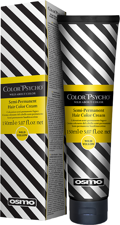 Osmo Color Psycho Wild Yellow es una crema colorante para el cabello semipermanente. La Crema proporciona un color de cabello amarillo de moda. Osmo Color Psycho tiene 15 tonos increíbles que se pueden cambiar a un hermoso color pastel en combinación con Osmo Color Tamer.