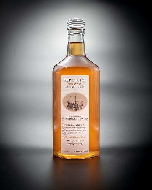 Este Eau de Colonge de Superli'37 tiene un aroma fresco y fresco a tabaco. La Colonia No. 1 Britannia es perfecta para usar como aftershave y es suave para la piel gracias a la relajante glicerina.