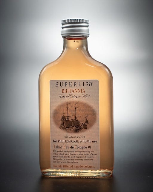 Este Eau de Colonge de Superli'37 tiene un aroma fresco y fresco a tabaco. La Colonia No. 1 Britannia es perfecta para usar como aftershave y es suave para la piel gracias a la relajante glicerina.