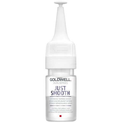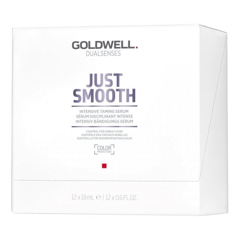 El suero suavizante intensivo Just Smooth de Goldwell Dualsenses está disponible en un paquete de 12 x 18 ml.