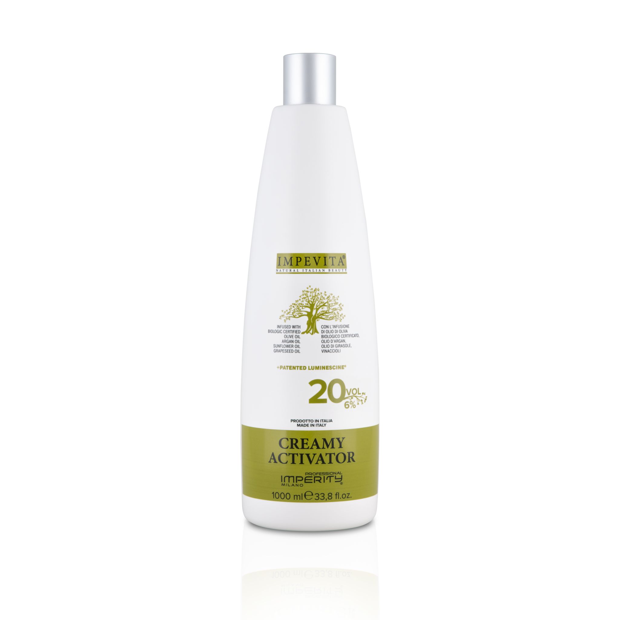 Imperity Impevita Creamy Activator es un hidrógeno extra cremoso estabilizado que garantiza un color de cabello sedoso, brillante y duradero. El hidrógeno está enriquecido con una mezcla de 4 tipos de aceites biológicos: aceite de oliva, argán, girasol y semilla de uva. Esta combinación única estabiliza, protege y acondiciona el cabello durante el proceso de coloración. El hidrógeno asegura una mezcla, aplicación e incorporación óptimas. Imperity Impevita Creamy Activator se puede combinar perfectamente con el tinte para el cabello Impevita, pero también con tintes para el cabello de otras marcas.