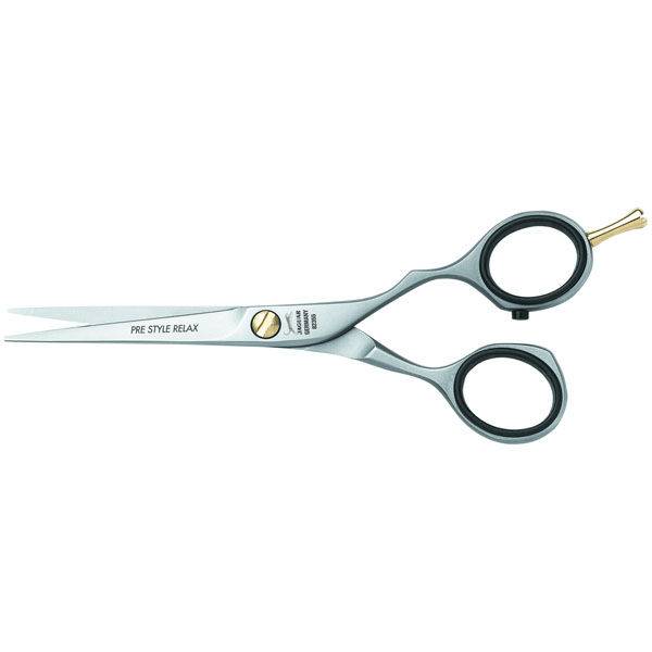 Las tijeras de peluquería Jaguar Pre Style Relax tienen un acabado satinado y microdentado en un lado para un agarre óptimo. Fabricadas en acero inoxidable, estas tijeras tienen un ángulo de corte plano para un afilado excelente. Su diseño descentrado, con un anillo para el pulgar extraangulado y un gancho extraíble para el dedo, garantiza una postura de trabajo ergonómica y relajada. El tornillo VARIO garantiza un movimiento suave de la hoja.