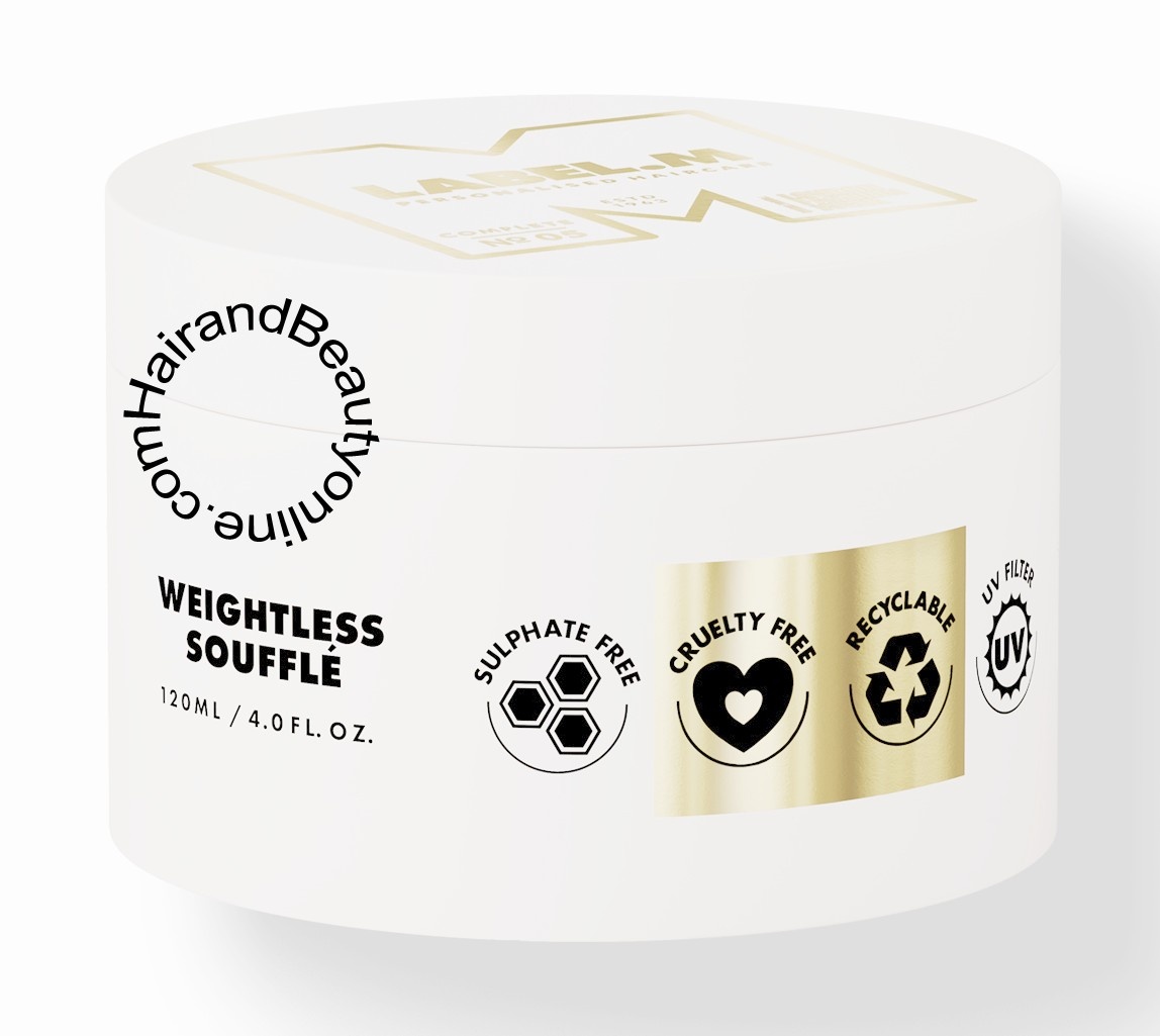 label.m Weightless Soufflé 120 ml es una crema de peinado que define el cabello ondulado y lo protege contra el calor de las herramientas de peinado y la radiación UV.