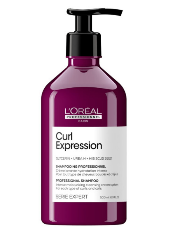 Le shampooing crème nettoyante hydratante intense Curl Expression de L'Oréal est disponible en emballages de 300 ml, 500 ml et 1500 ml.
