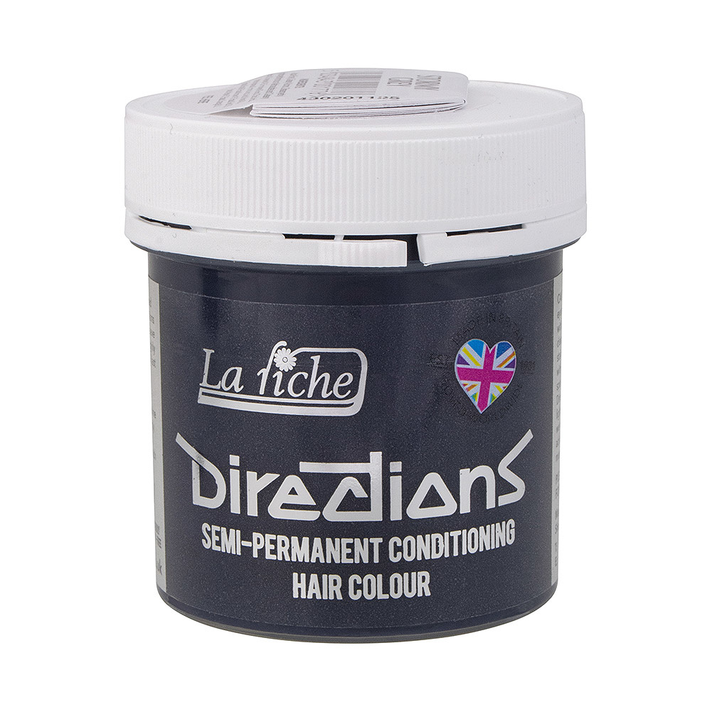 La Riche Directions Colors Stormy Grey est une coloration semi-permanente. Avant utilisation, les cheveux doivent d'abord être décolorés, sinon l'effet souhaité ne sera pas atteint. Les couleurs La Riche Directions sont parfaites pour se mélanger les unes aux autres pour une couleur unique.