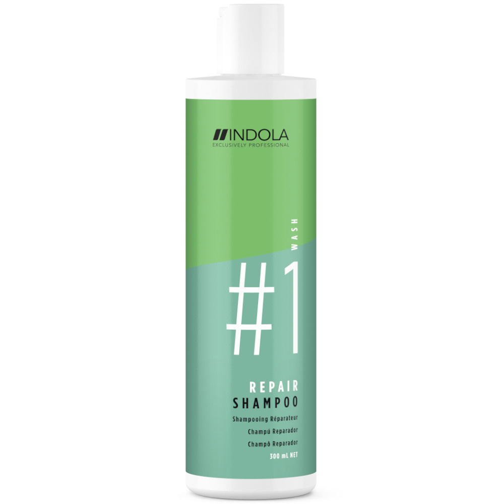 Le shampooing réparateur Indola Care est disponible en emballages de 300 ml et 1500 ml.