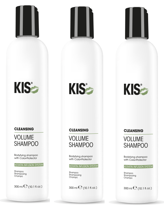 Le shampooing nettoyant volume KIS Kera est disponible en emballages de 300 ml et 1000 ml.
