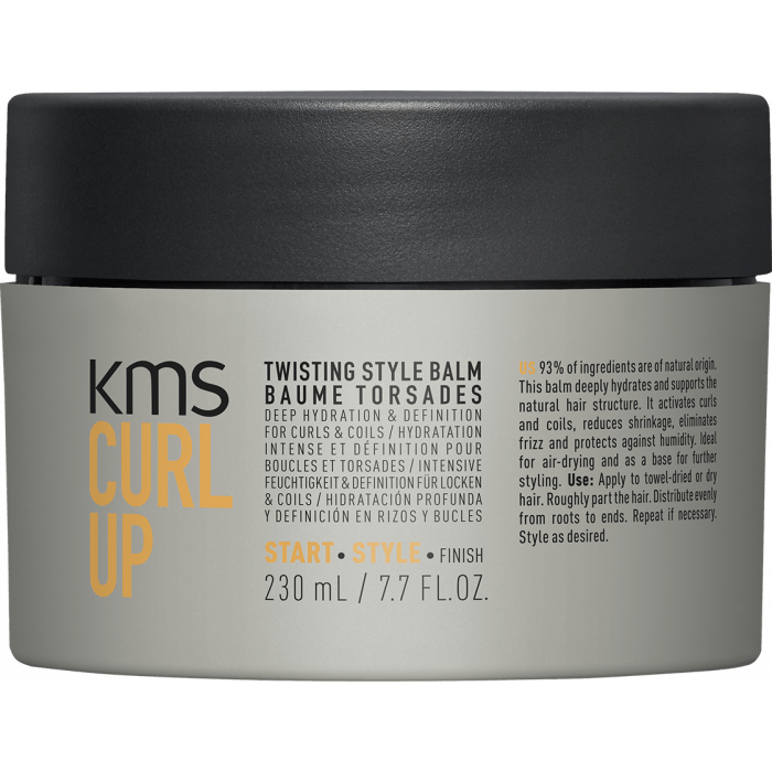 Il balsamo CurlUp Twisting Style di KMS è una crema modellante che rivitalizza i ricci. Idrata e doma l'effetto crespo. È 100% vegano.
