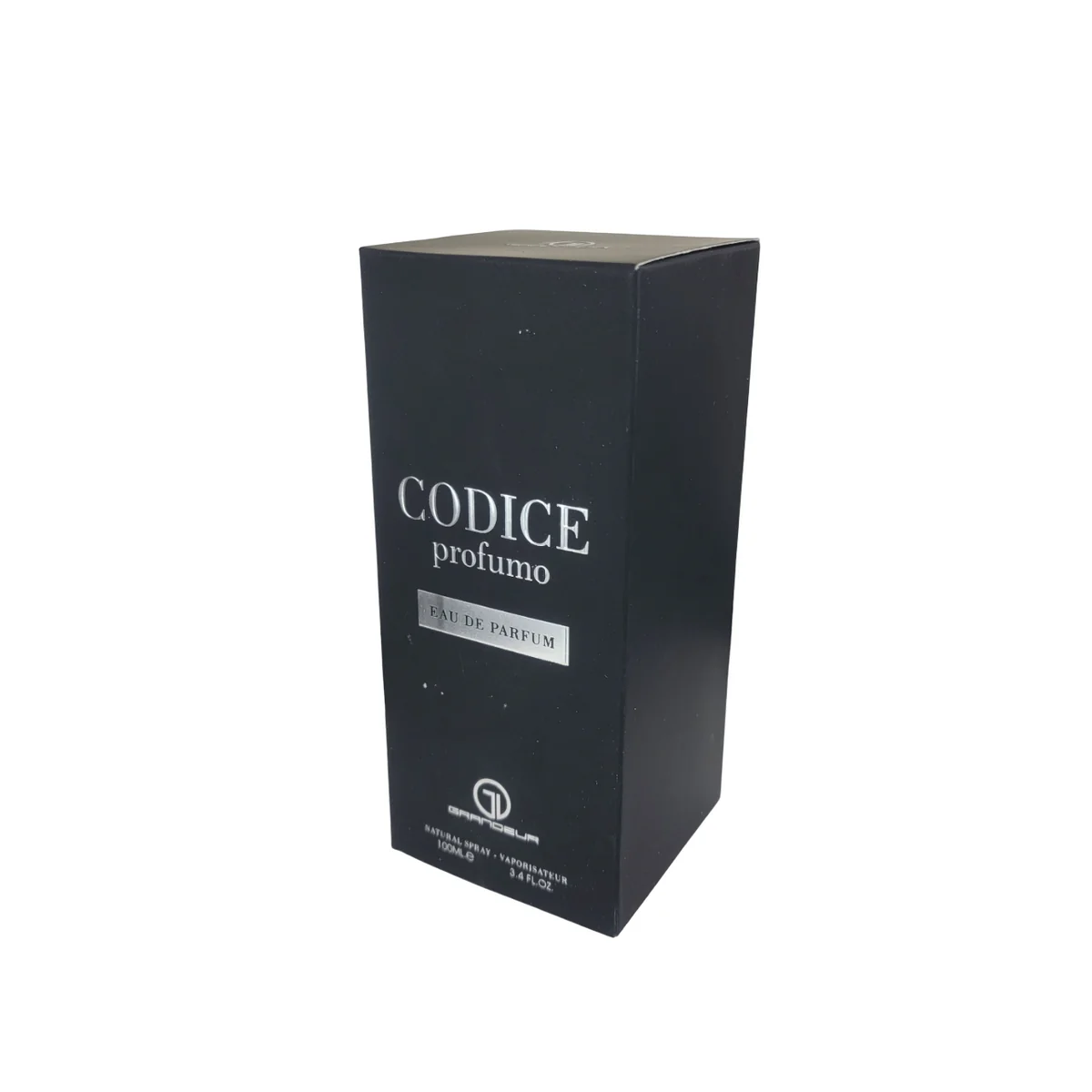 GRANDEUR Parfum è lieta di presentare la sua ultima fragranza: CODICE PRAFUMO, presentata in un'incantevole bottiglia da 100 ml. Lasciatevi incantare dall'essenza intrigante e raffinata di questa fragranza unica.