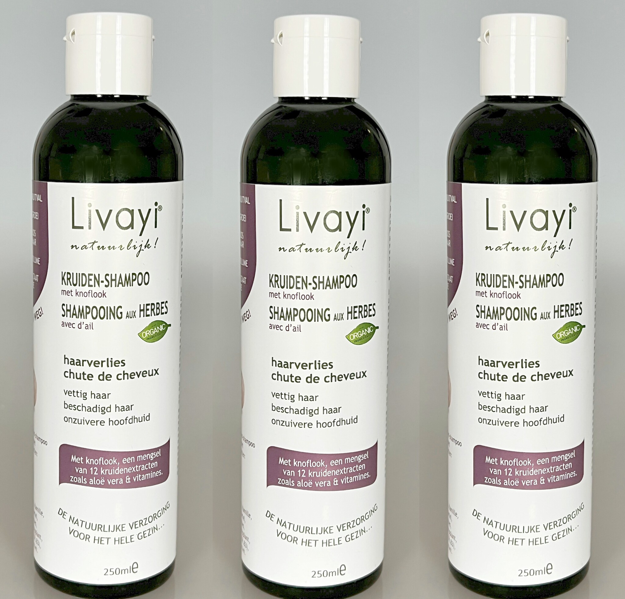 Lo shampoo all'aglio Livayi è disponibile in flaconi da 250 ml. (Noto anche come Herbalicea)