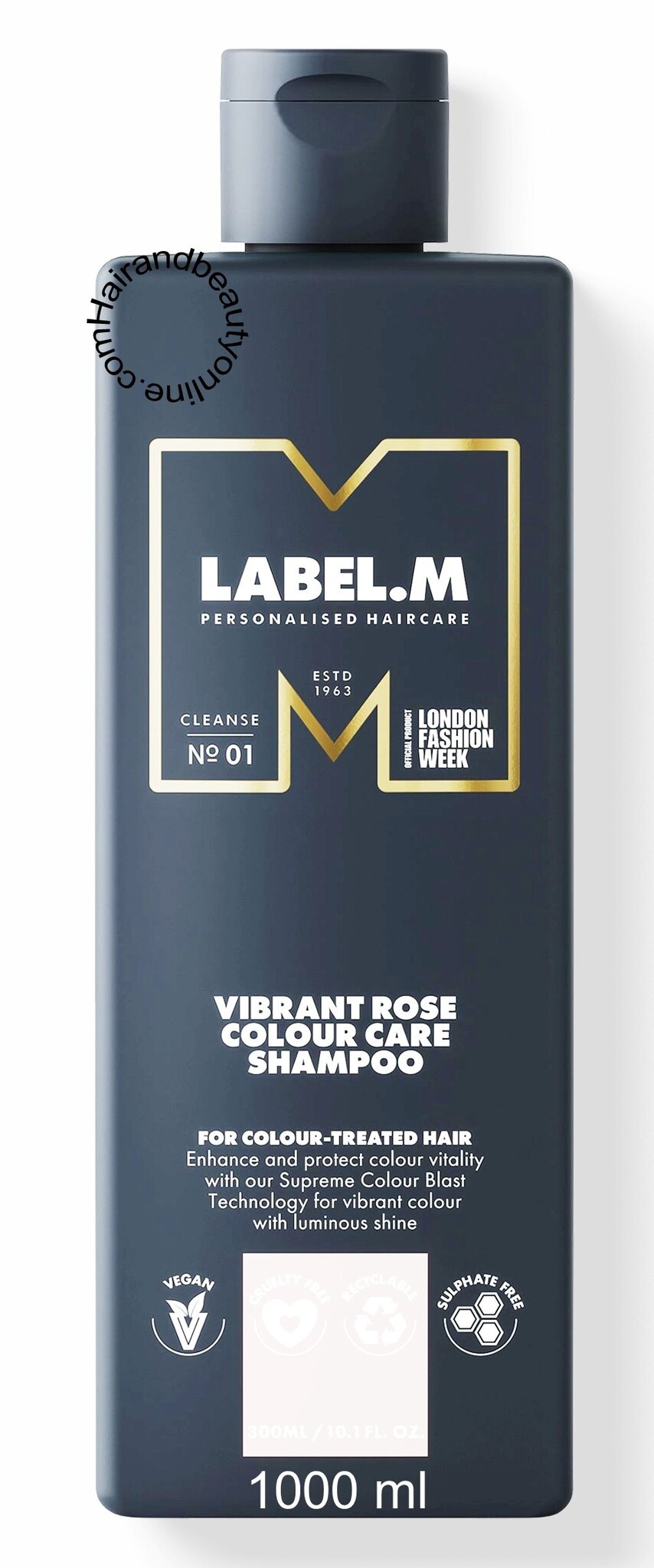 Label.M Vibrant Rose Color Care Shampoo è uno shampoo detergente leggero per capelli colorati e trattati chimicamente ed è adatto per l'uso quotidiano.