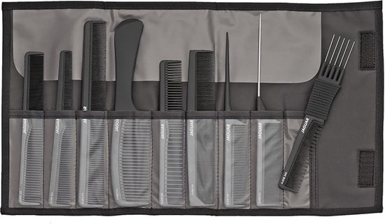 Jaguar A-Line Kammenset bevat negen verschillende kammen voor optimale keuzevrijheid. De kammenset wordt geleverd in een handige opbergetui, die tevens makkelijk mee te nemen is. Alle kammen zijn ionisch en daarmee antistatisch voor een glad resultaat. De kammenset is verkrijgbaar in acht verschillende kleuren en bestaat uit de volgende kammen: