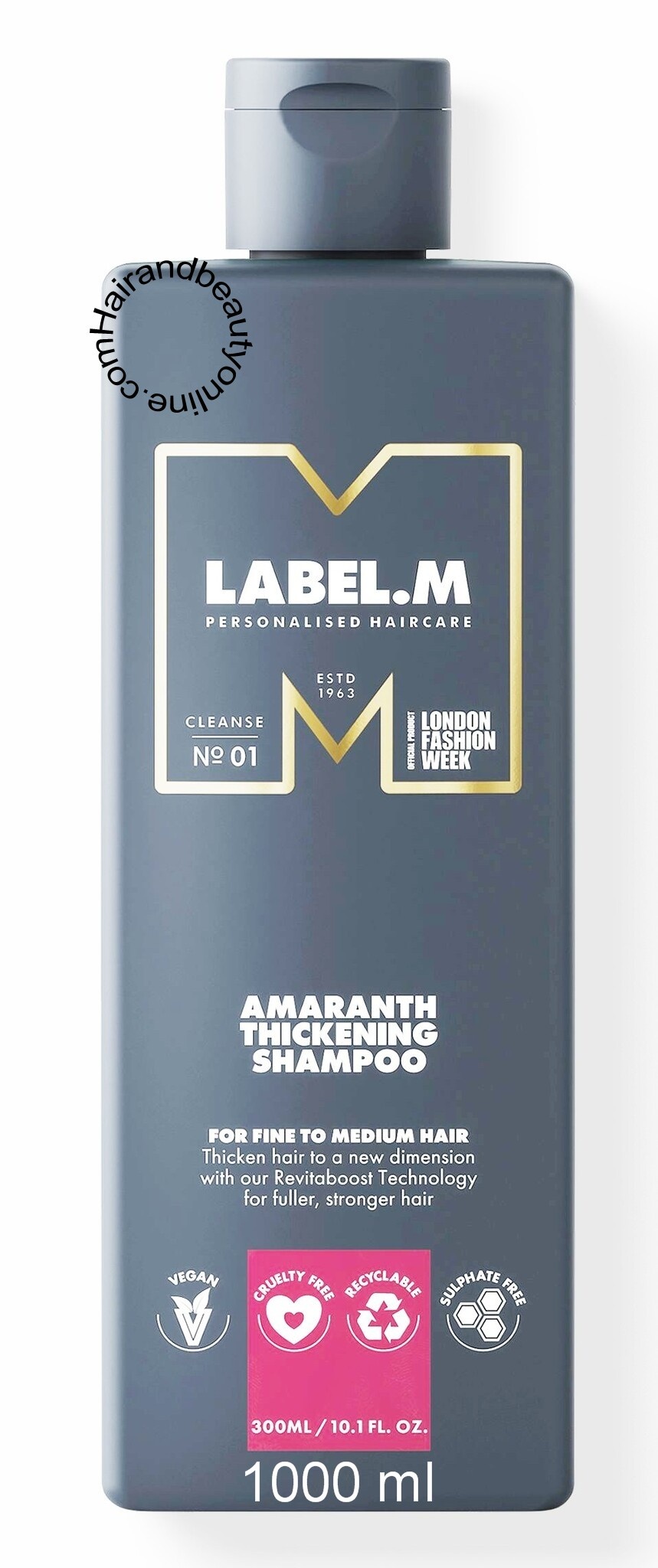Label.M Amaranth Thickening Shampoo is verkrijgbaar in een 300 ml en 1000 ml verpakking.