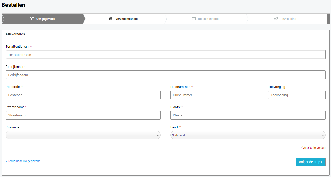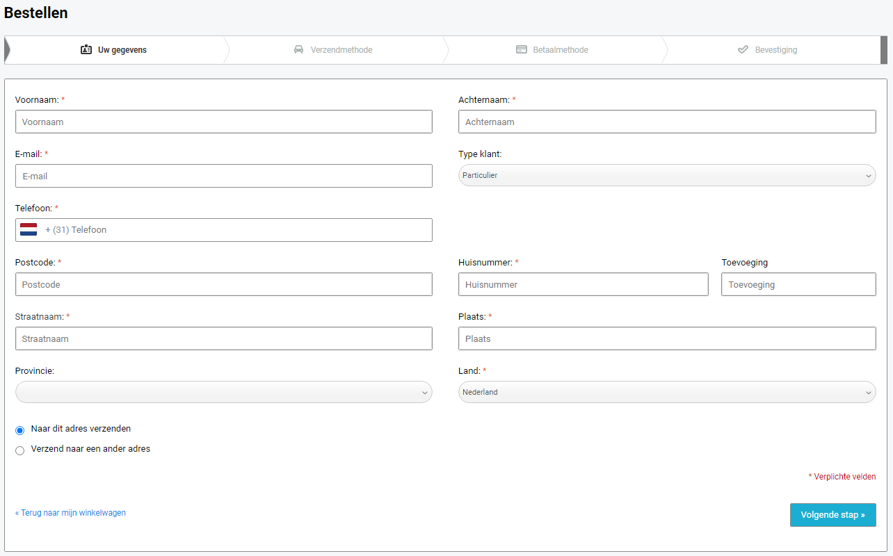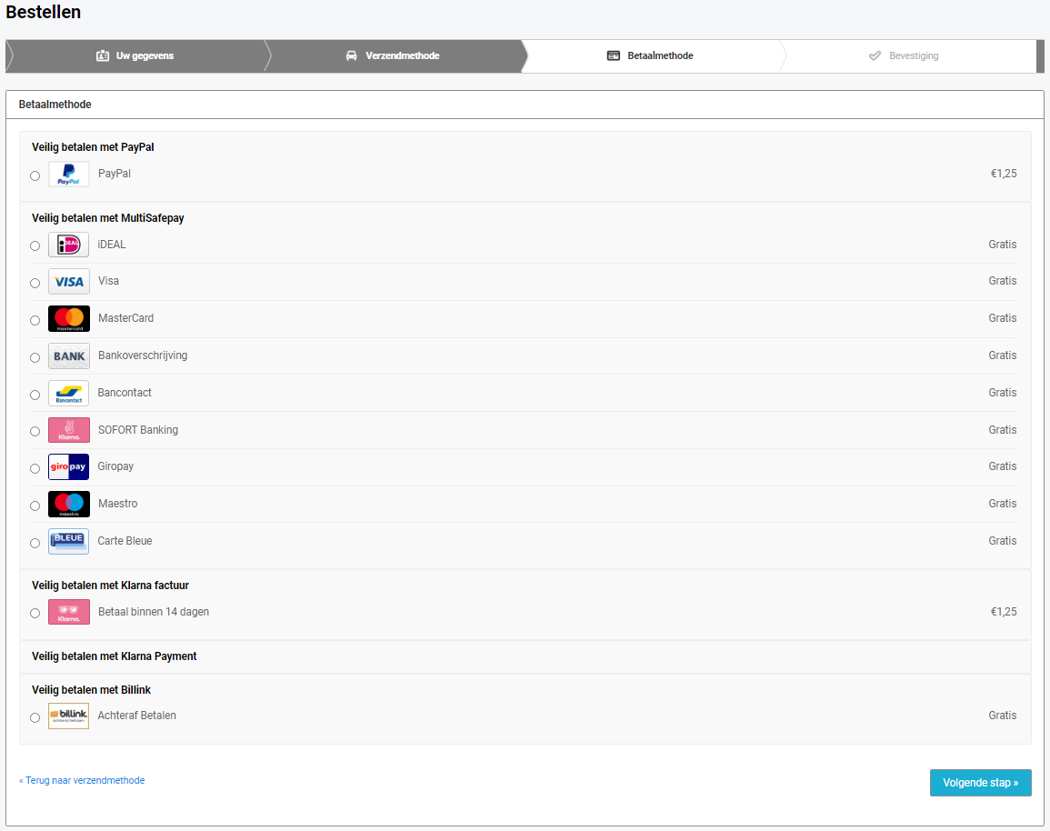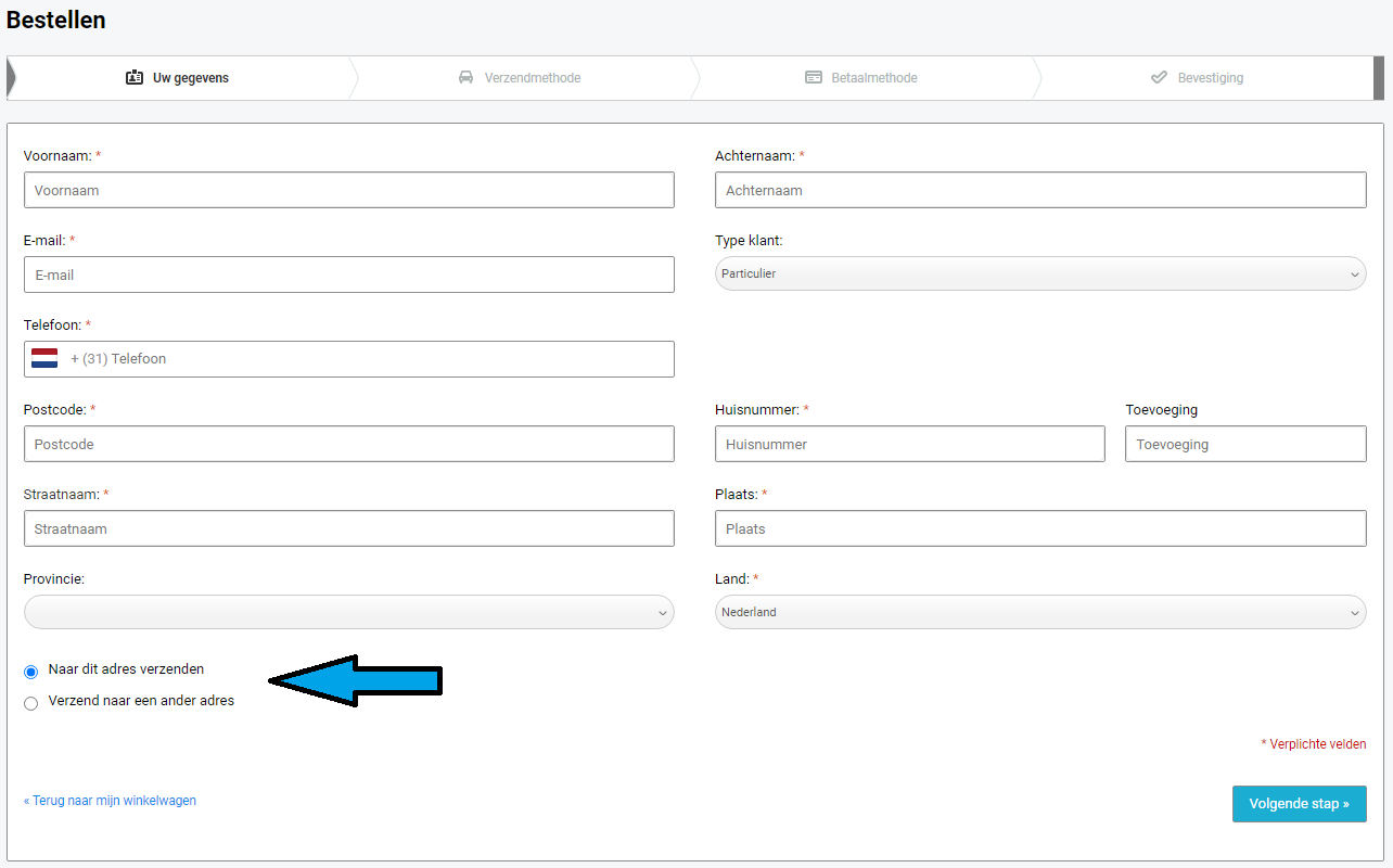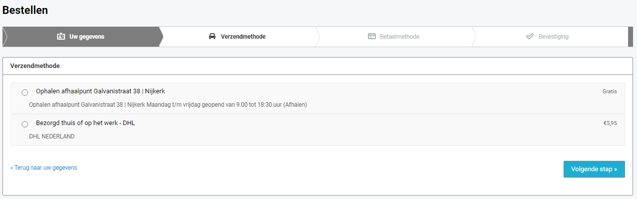 Kies je verzendmethode en ga door naar de volgende stap.