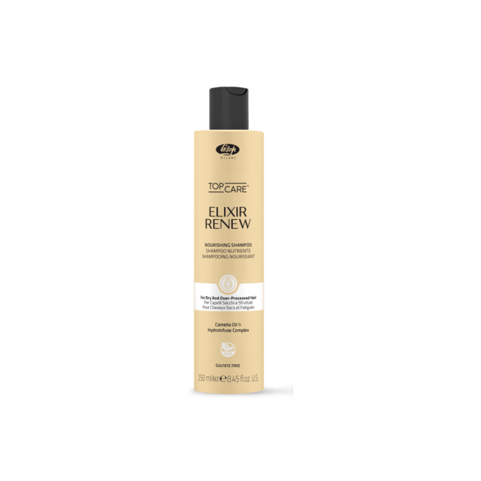 De Lisap Top Care Elixir Renew Nourishing Shampoo is de ideale keuze voor wie droog en beschadigd haar weer nieuw leven wil inblazen. Met een milde, sulfaatvrije formule en volledig vegan ingrediënten, reinigt deze shampoo het haar op een zachte manier terwijl het intensief voedt en hydrateert. Dankzij het gebruik van Camellia-olie en het innovatieve HydroInfuse Complex wordt het haar versterkt en krijgt het een natuurlijke glans.